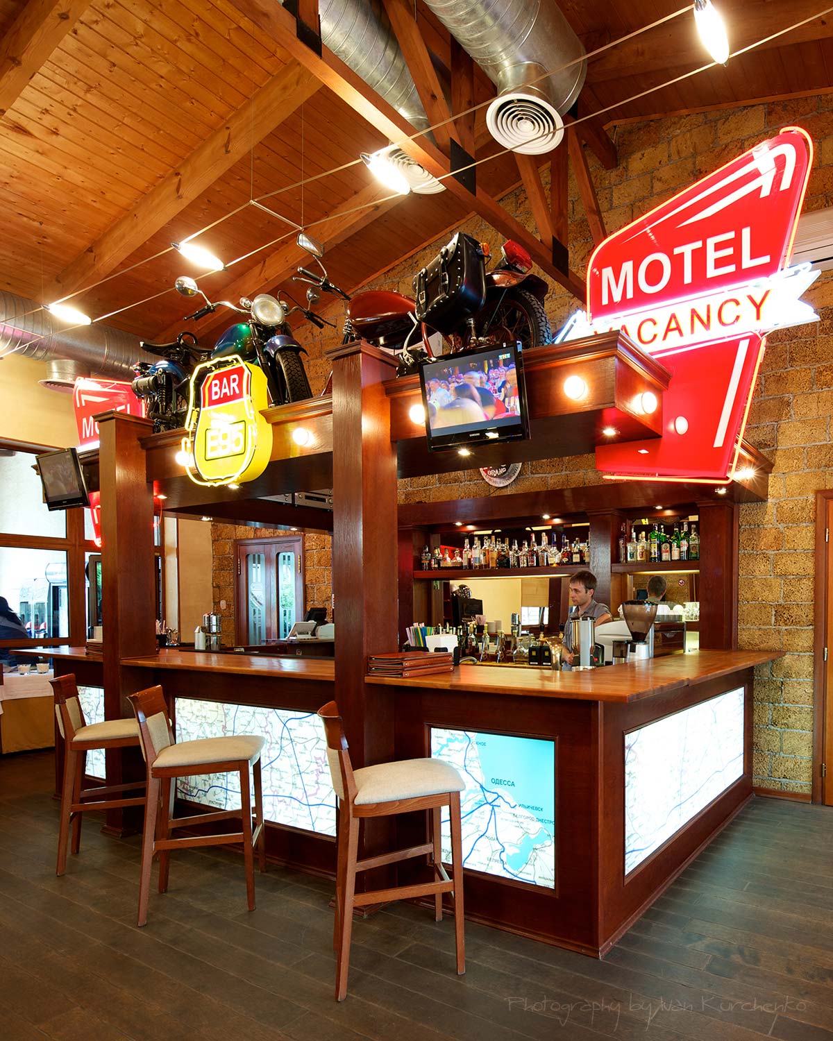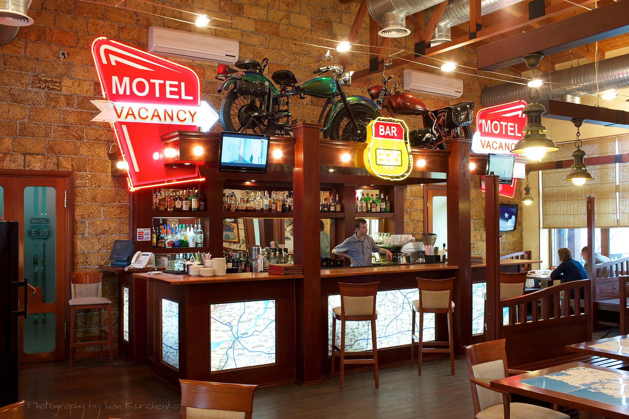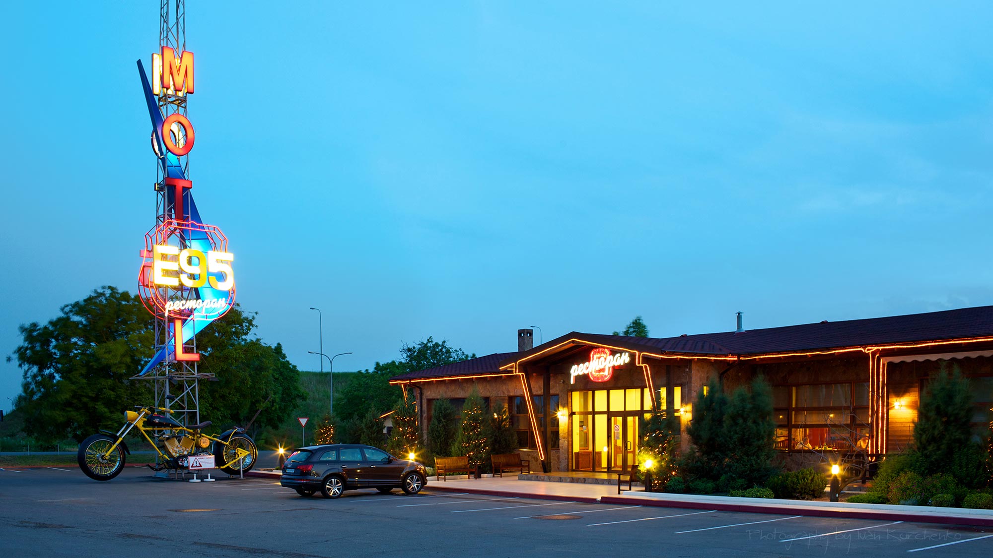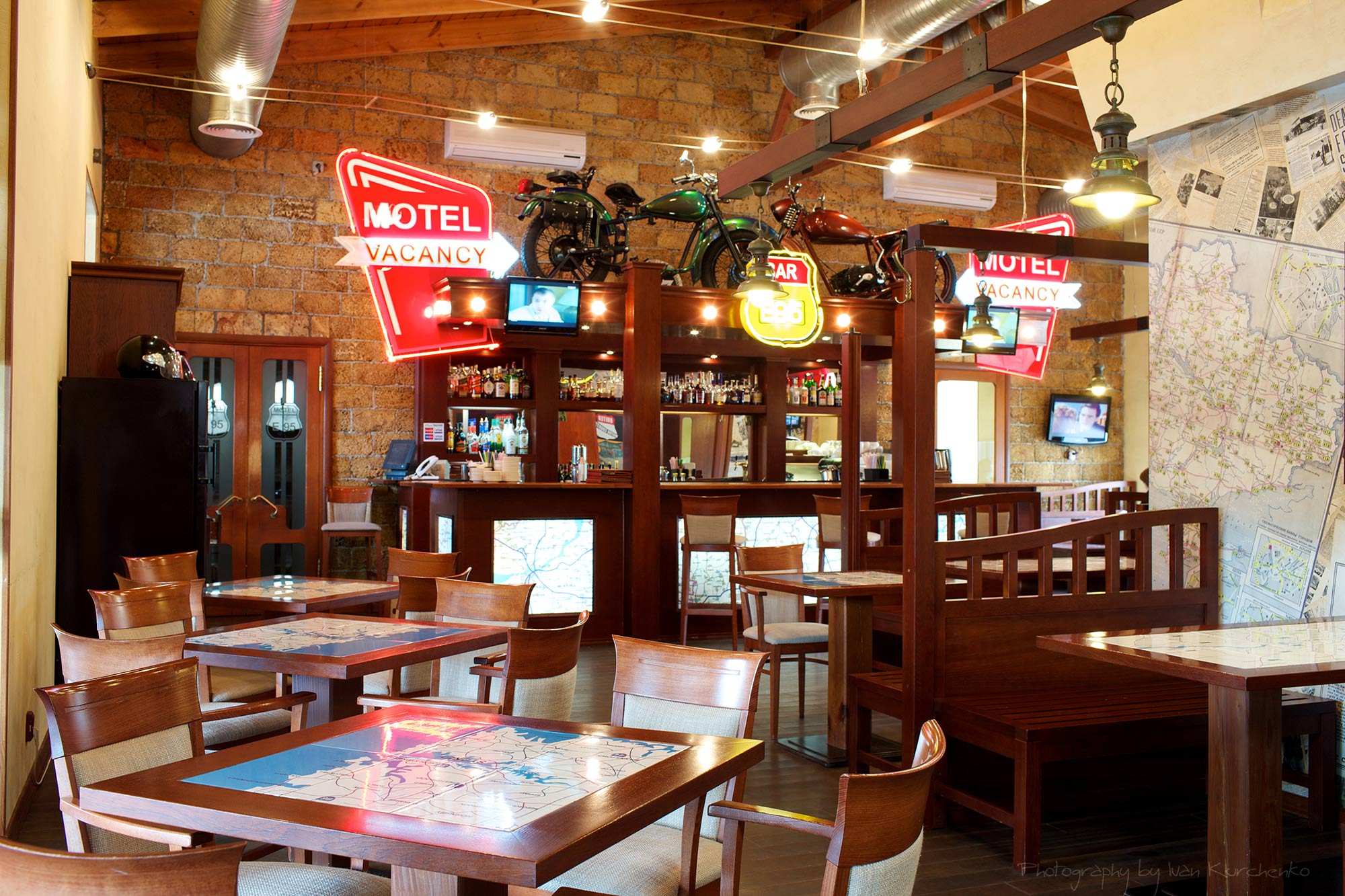 Мотель находится на трассе Е-95 на расстоянии 50 км от г.Одесса, мотель построен в байкерском стиле.